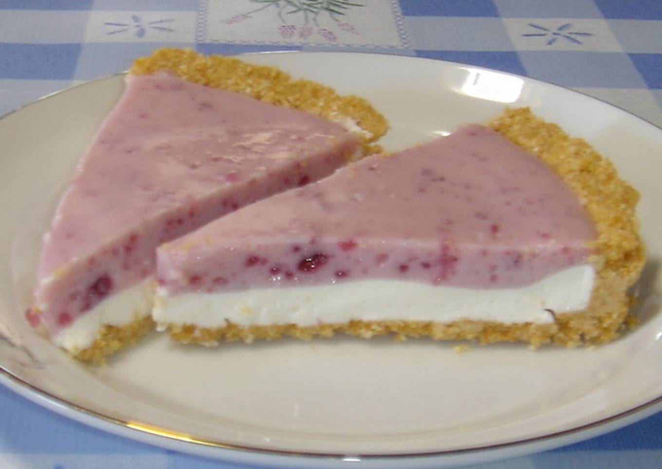 - Divide the yoghurt mixture in half. With half of the mixture, add the blueberry jam and mix.