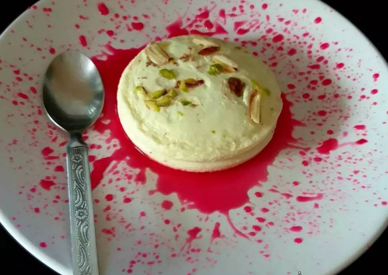 - Now take it in a serving plate and garnish with rose syrup. Rose syrup is optional