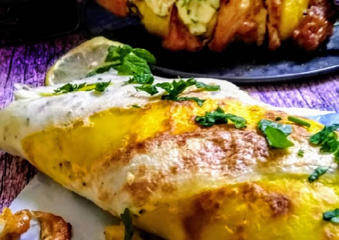 I made arabic shwarma with my own version for marination of chicken but with special and essential ingredients of arabic shwarma .. with potatoes spiral .. and the main and exciting part is to serve in egg wrap ... With just creativity .... Worthy experiment .... ..must try recipe ..not too hard ... Egg wrap can b made in simple way but i did just for creativity .....