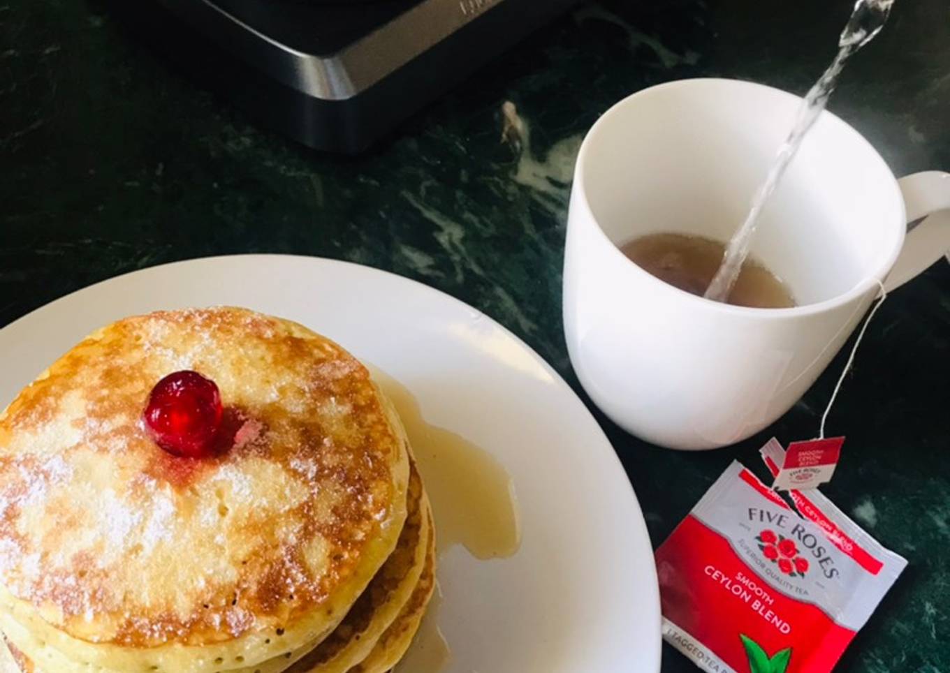 - Serve pancakes with a drizzling of golden syrup, icing sugar dusting and a cherry on top for the flair lol