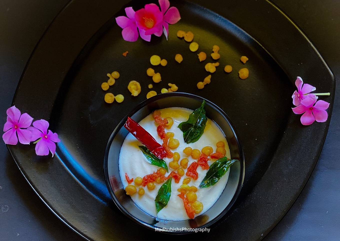 - For plating add the Raita, add the multicolour boondi’s and drizzle with the Tadka. Enjoy