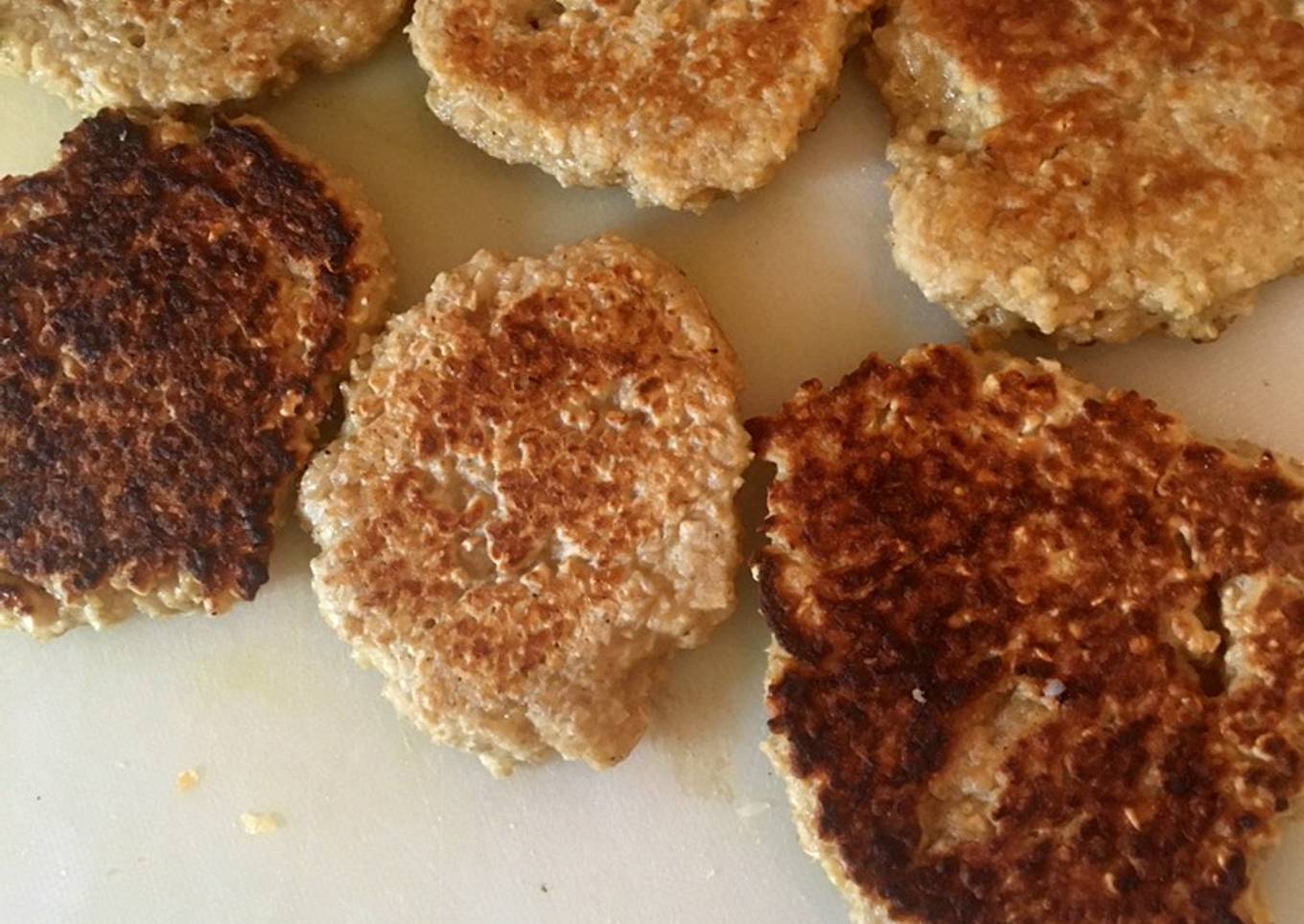 - Heat a little butter or/and oil in a frying pan and dollop a spoonful of the mixture in. Flatten a bit. I get 3 together in my pan.